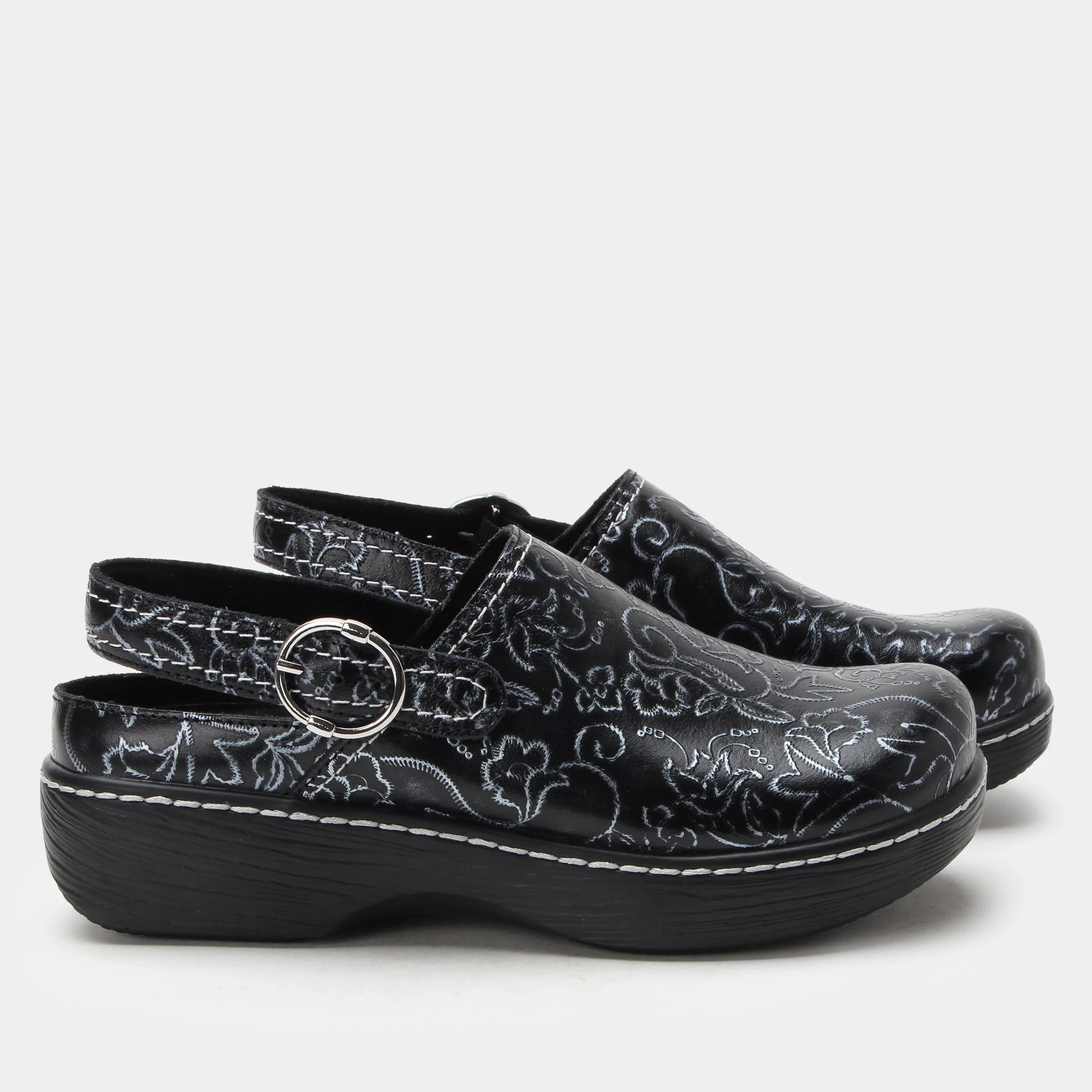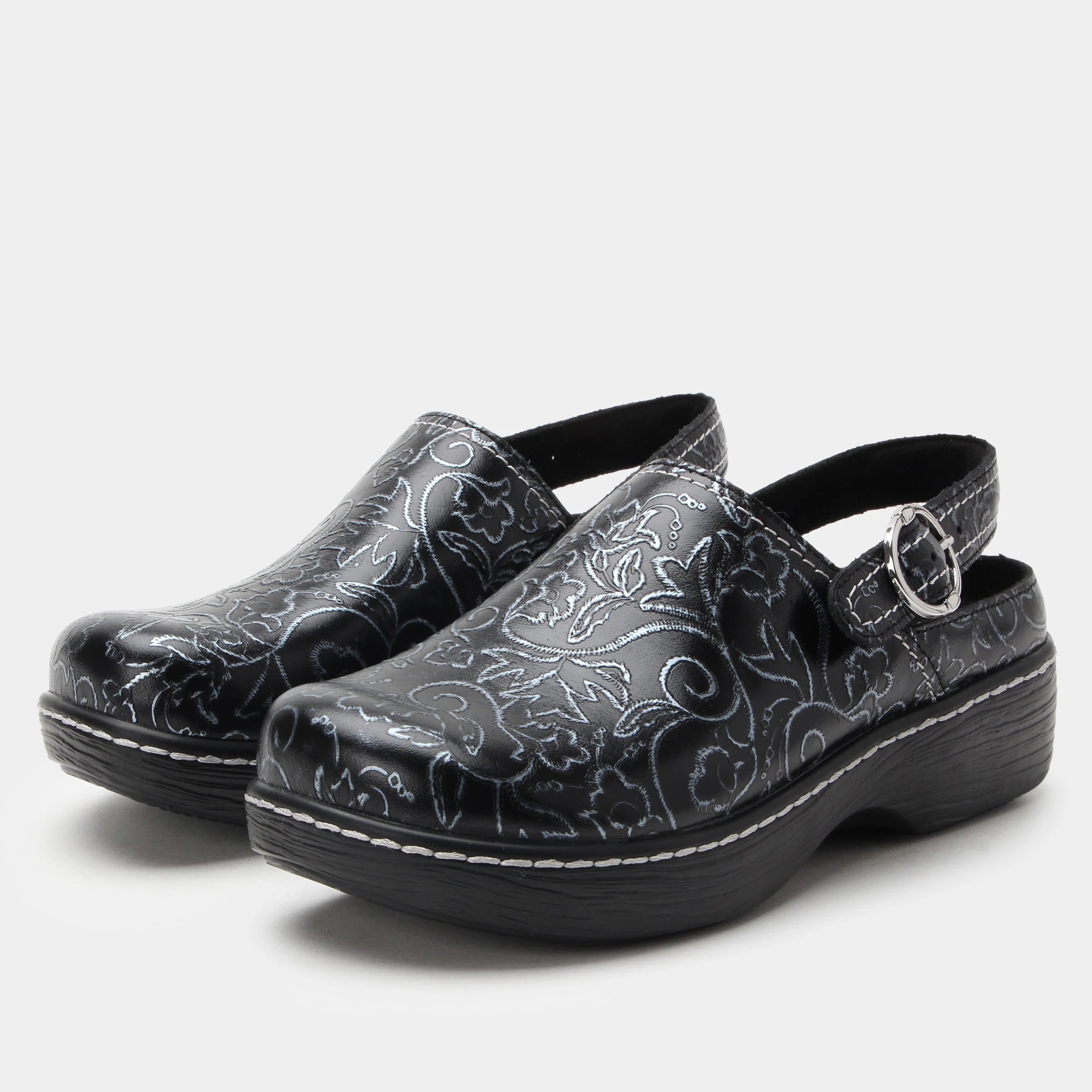 Practical meets fashionable with the Olie, a sling-back leather clog. This twist on a timeless classic features a stain-resistant leather upper, padded sling-back strap with an adjustable buckle, and slip-resistant outsole. This style also provides the comfort Alegria is known for with a durable microsuede removable footbed that can easily be swapped from medium to wide width.