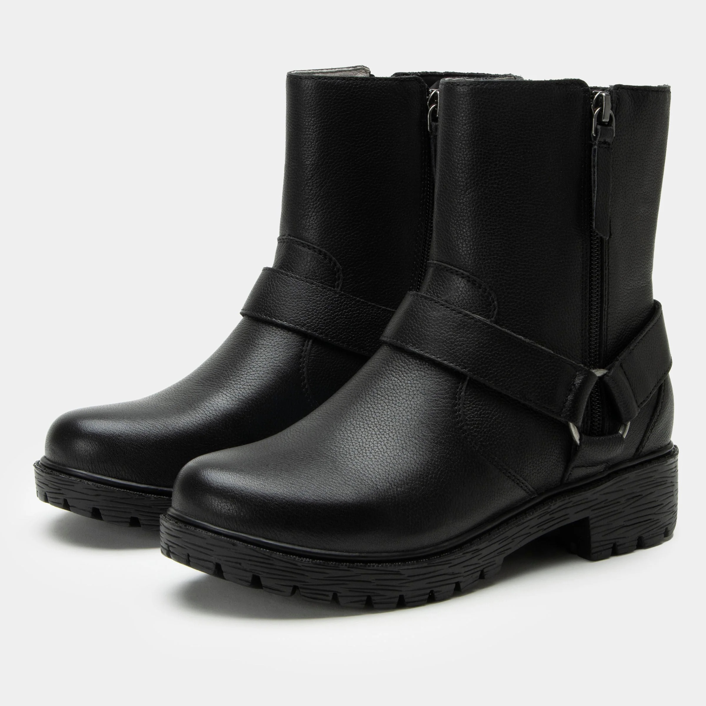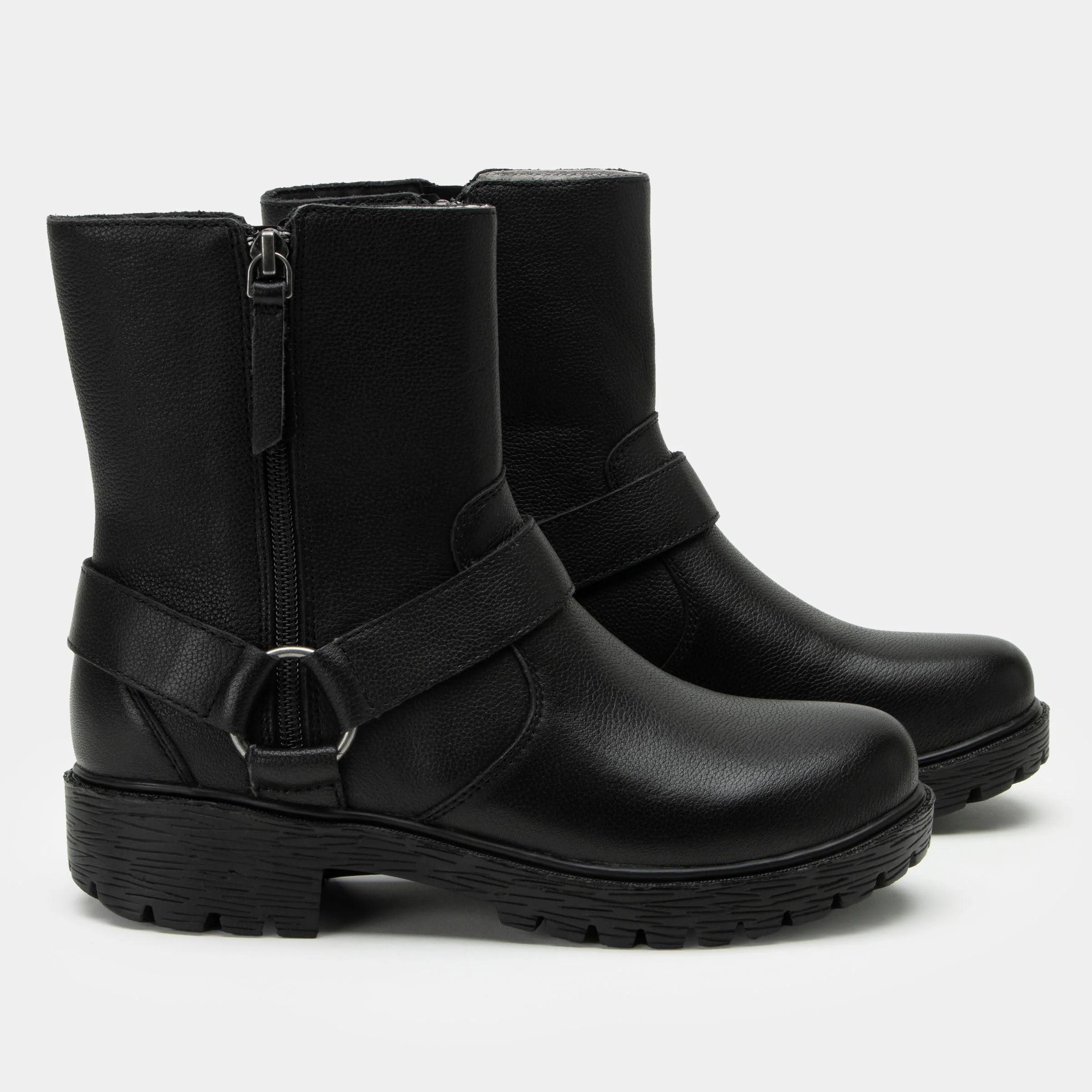 This moto-inspired boot features a sturdy stain-resistant leather upper and slip-resistant luxe lug outsole. For on and off ease, it features double zippers along the shaft. For underfoot support, there’s a removable suede-lined polyurethane, cork, and memory foam footbed ergonomically designed to provide lasting arch support throughout the day.