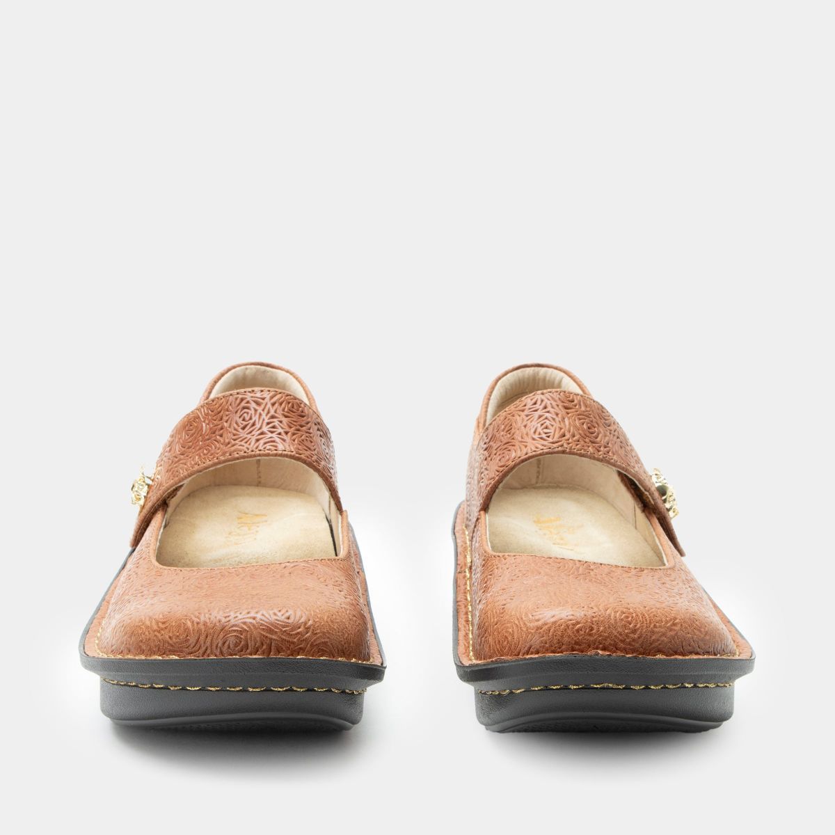 She’s Back! Popular Mary Jane features an adjustable hook-and-loop close strap, each adorned with its own unique ornament. For added comfort and support, it incorporates an ergonomically designed memory foam and cork footbed that’s easily removable with a classic rocker outsole that creates a natural rolling motion when walking.